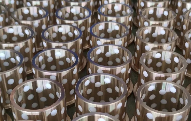 - 구조: 표면 적용 범위가 30% 이하인 청동 매트릭스에 구멍이 뚫려 있으며 PTFE 컬럼이 압입되어 "금속 하중을 견디는 고체 윤활" 구성을 형성합니다.
